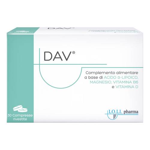 DAVDescrizione Complemento alimentare a base di acido alfa-lipoico, vitamina B6 e vitamina D utile in caso di aumentato fabbisogno o di ridotto apporto con la dieta dei componenti presenti. Il magnesio contribuisce alla normale funzione muscolare e interviene nel processo di divisione delle cellule. Il magnesio e la vitamina B6 contribuiscono al normale funzionamento del sistema nervoso e alla riduzione della stanchezza e dell'affaticamento. La vitamina B6, inoltre, aiuta a regolare l'attività ormonale. La vitamina D supporta la funzione del sistema immunitario e quella muscolare. Ingredienti Agenti di carica: cellulosa microcristalli...